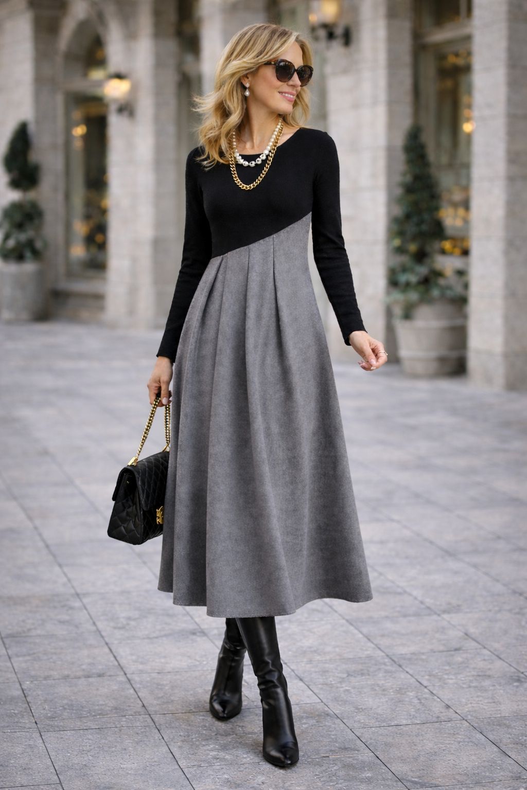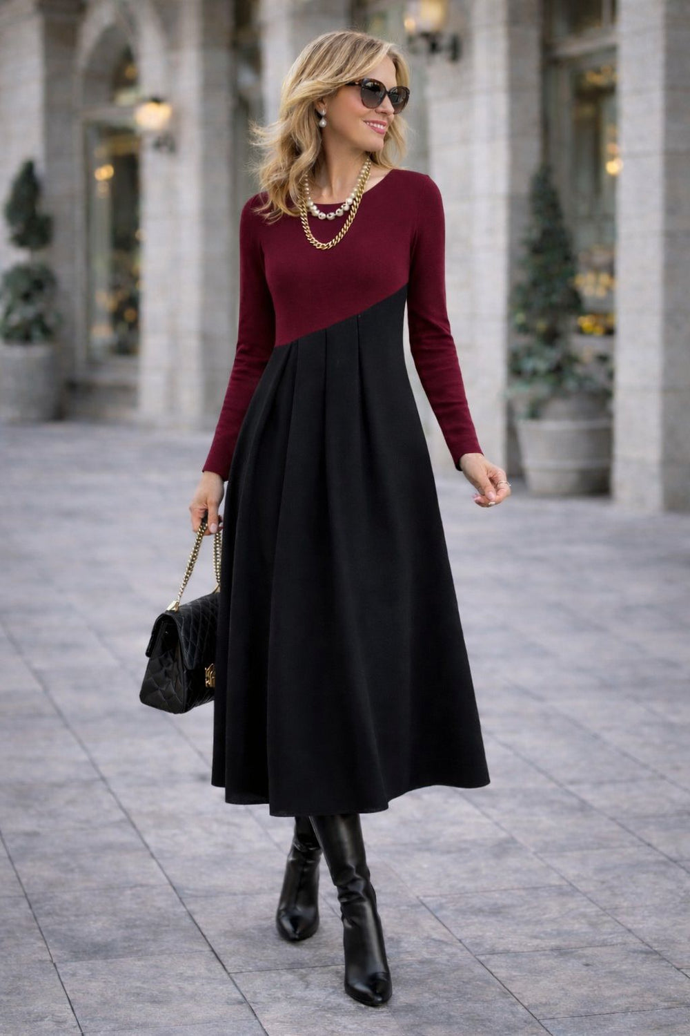 Yuna | Vestido Midi de Manga Larga con Corte Asimétrico